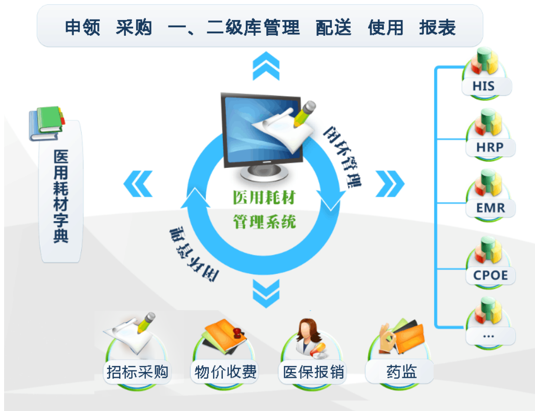 针对医用耗材管理方面医院现有管理系统虽可满足基本的信息维护、入出库处理和记账、简单的信息统计等需要,但耗材及供应商资质管理等无法实现电子化,大部分数据都由人工审核管理,不仅工作量大、难度高、准确率低,而且无法实现有效的动态化管理,“流向”管理机制无法完善,无法实现闭环管理。现有的信息管理系统无法及时提供准确数据分析,大部分数据报表需人工重新调整且具有滞后性,缺少耗占比与百元医疗收入消耗耗材费用等主要指标,令耗材管理者无法实时把控耗材的使用情况。因此需要建设一套专业的医用耗材管理系统平台,实现医院耗材规范化、科学化、全程化、精细化管理。
