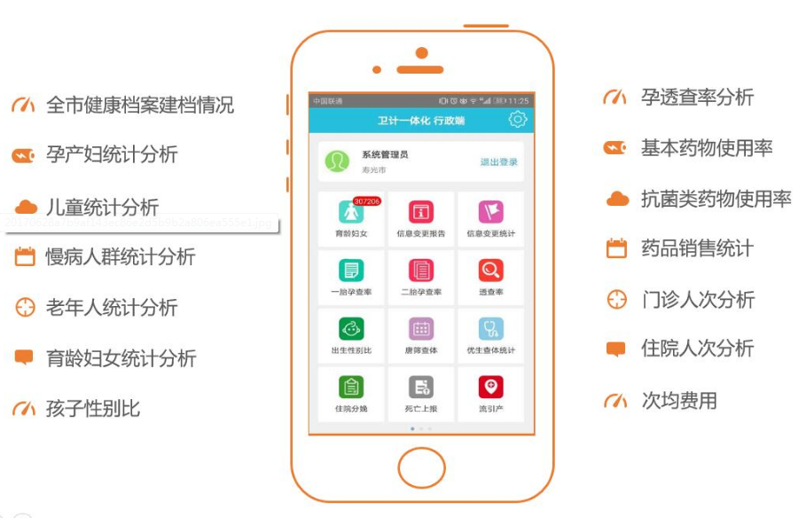 为管理人员提供各项指标的统计分析,实时掌握卫计各机构运行情况。