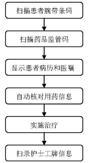 . 医护人员在临床工作过程中,首先扫描患者的腕带,确定患者身份,然后继续扫描药品标签,扫描后系统自动匹配患者与药品的信息,匹配后,再执行医嘱。